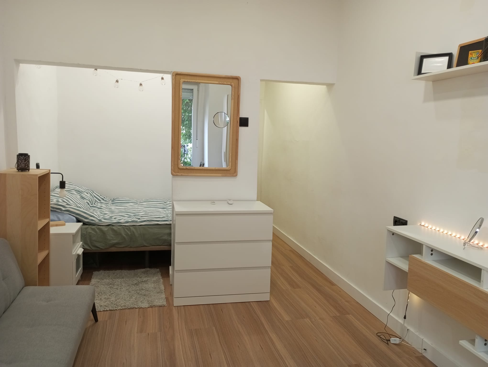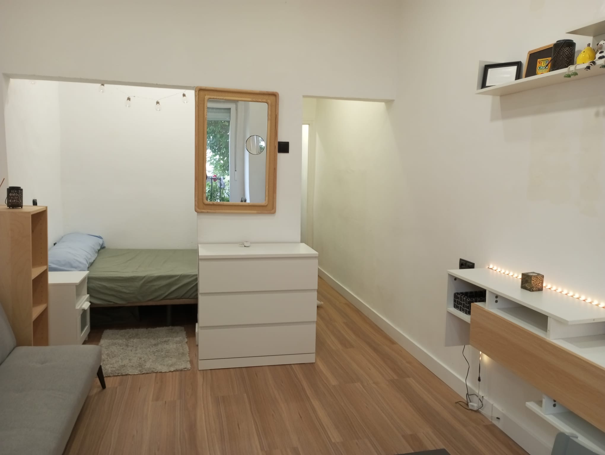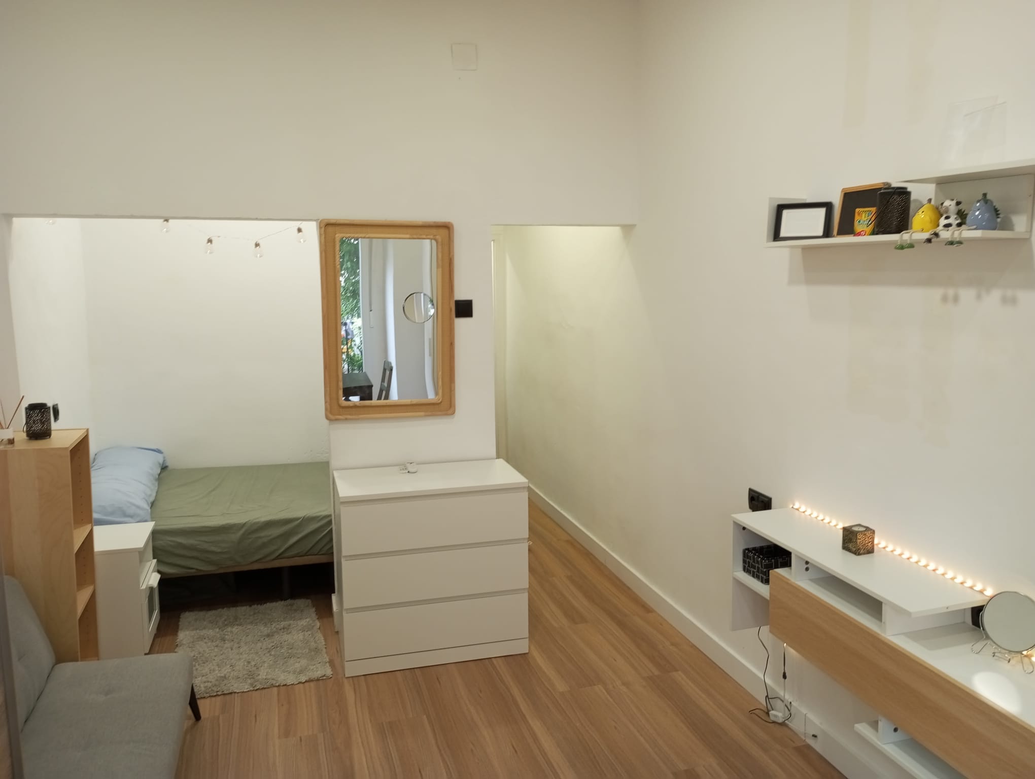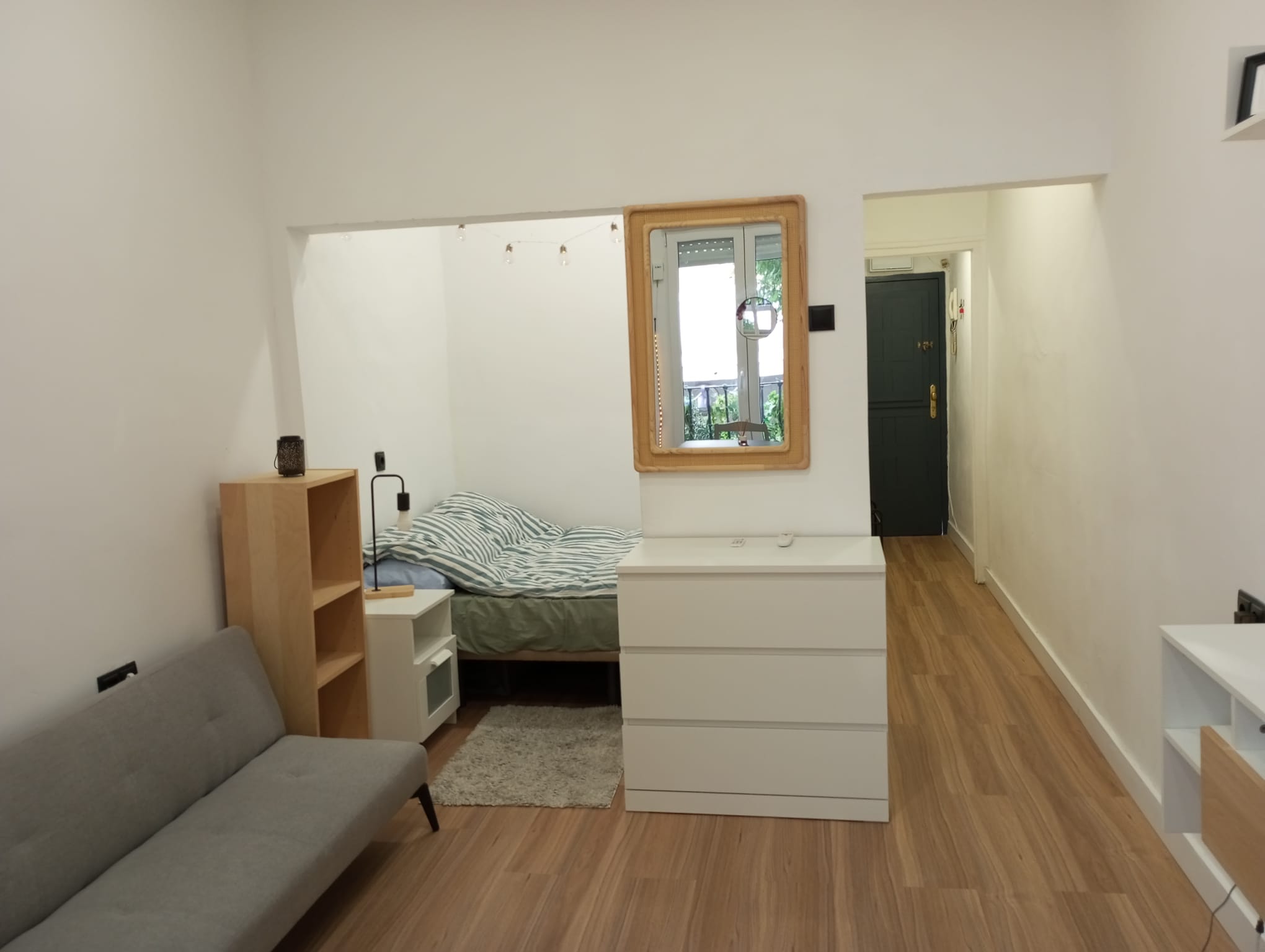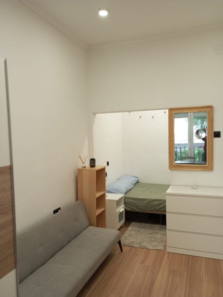 • Salón luminoso con zona de dormitorio integrada, ideal para un estilo de vida funcional y contemporáneo.