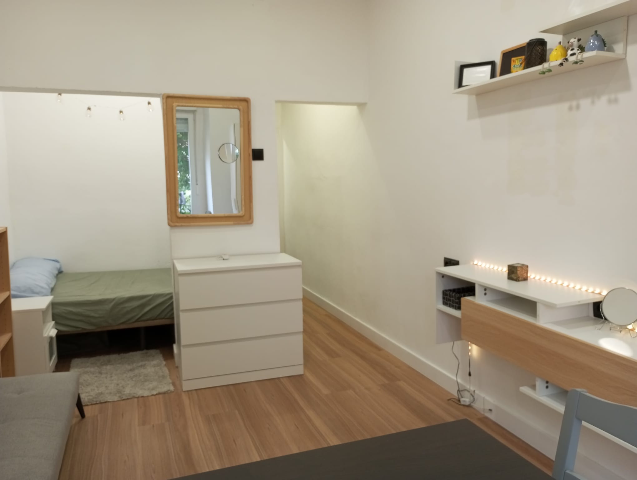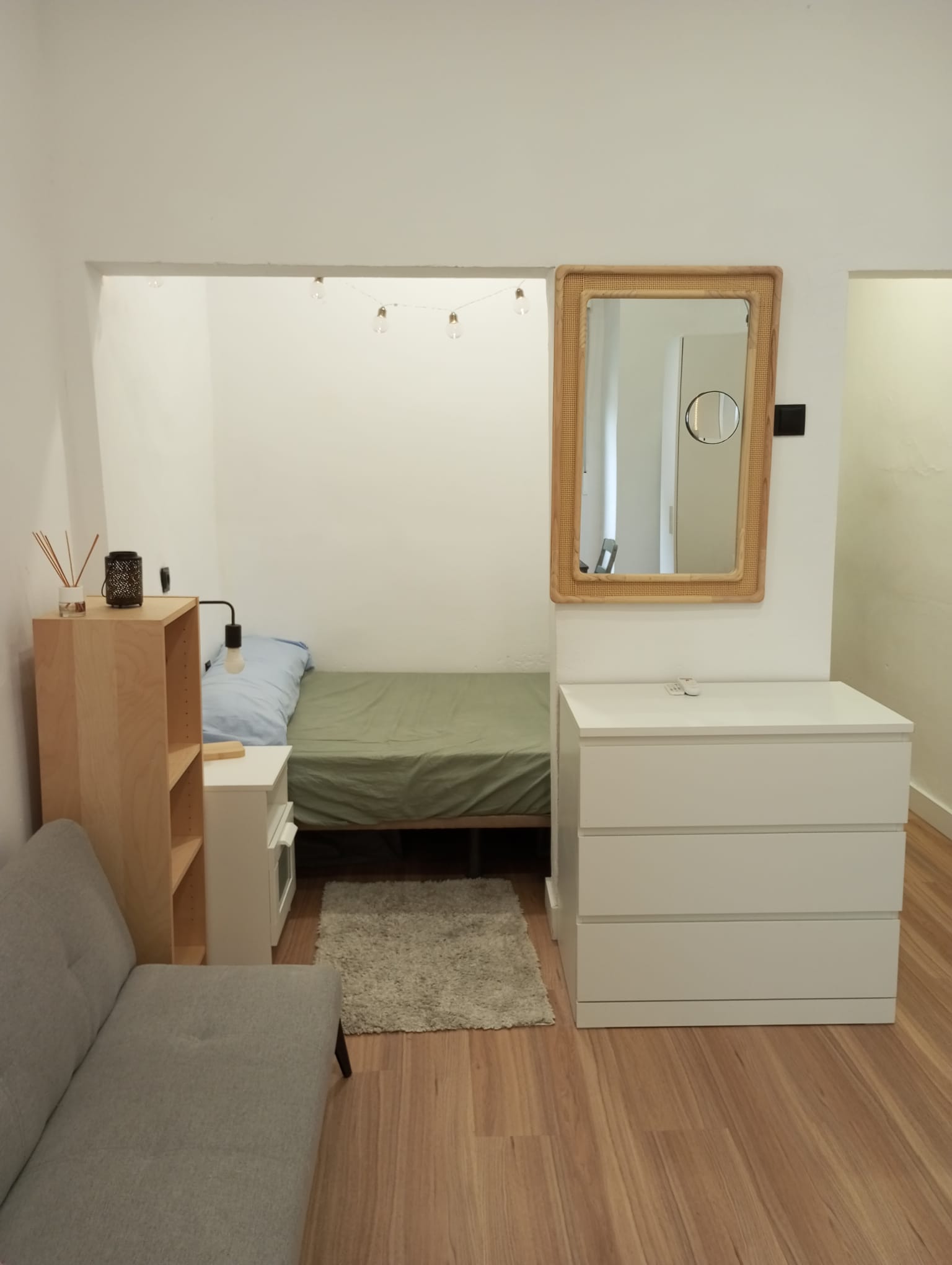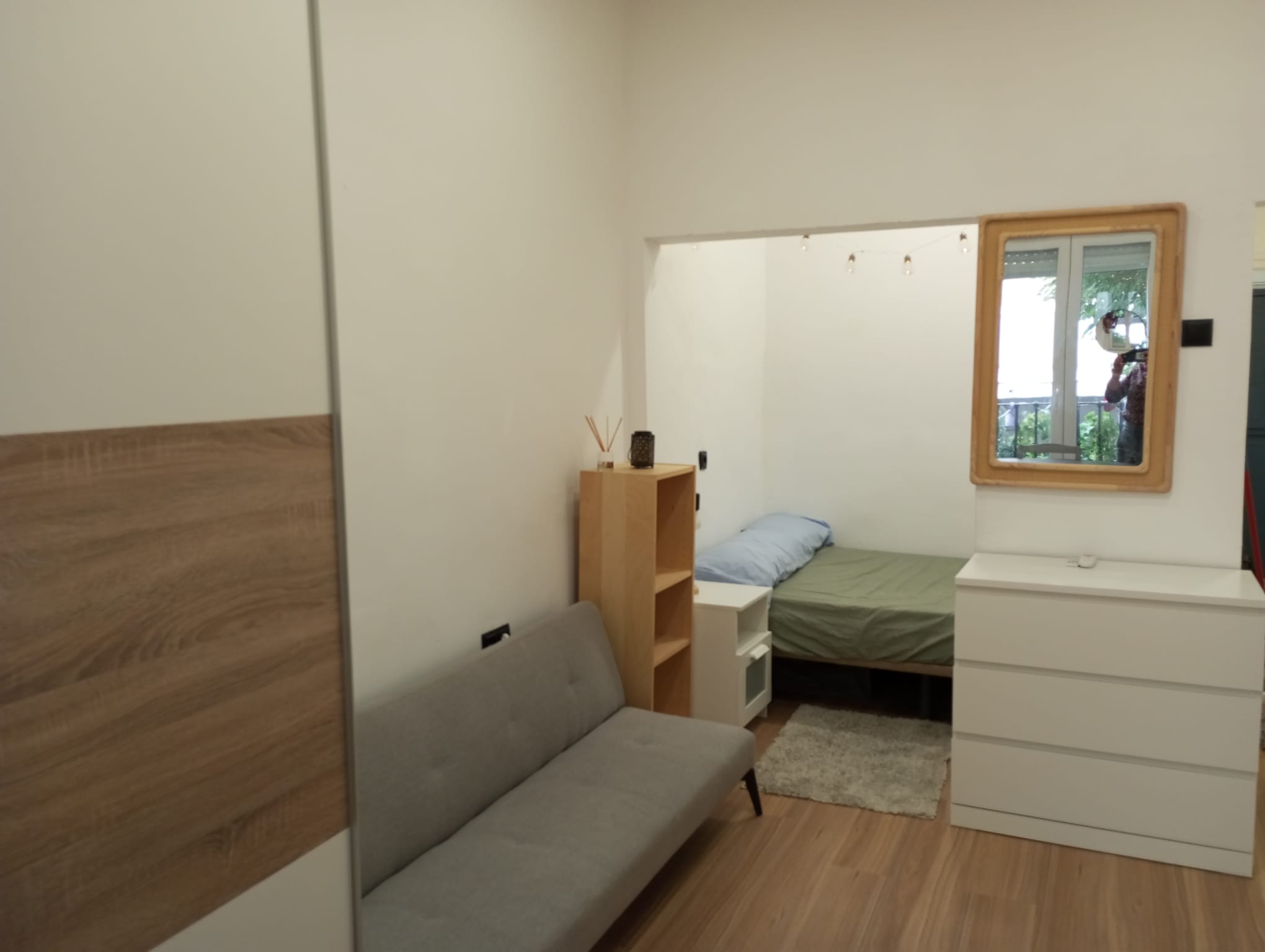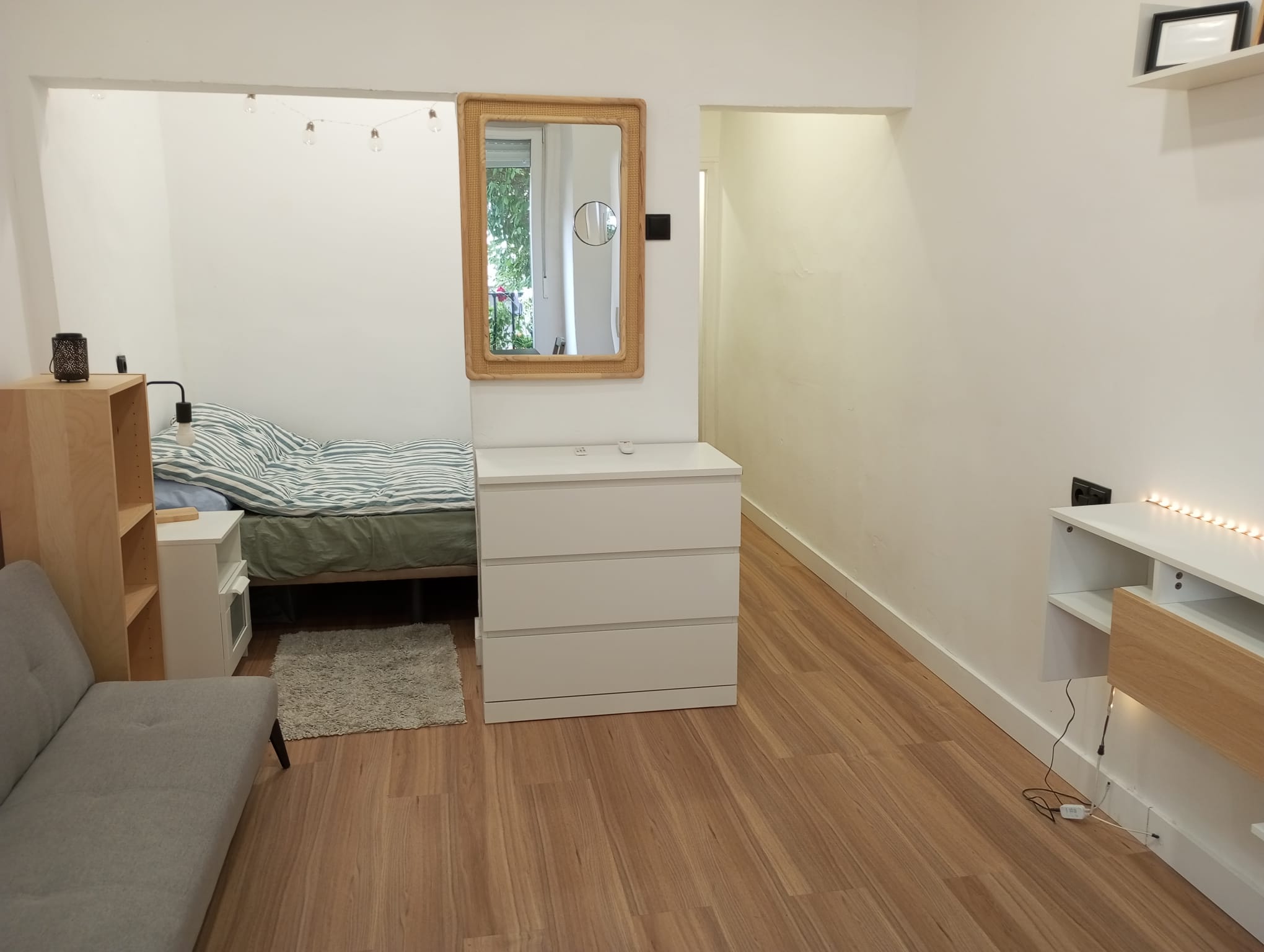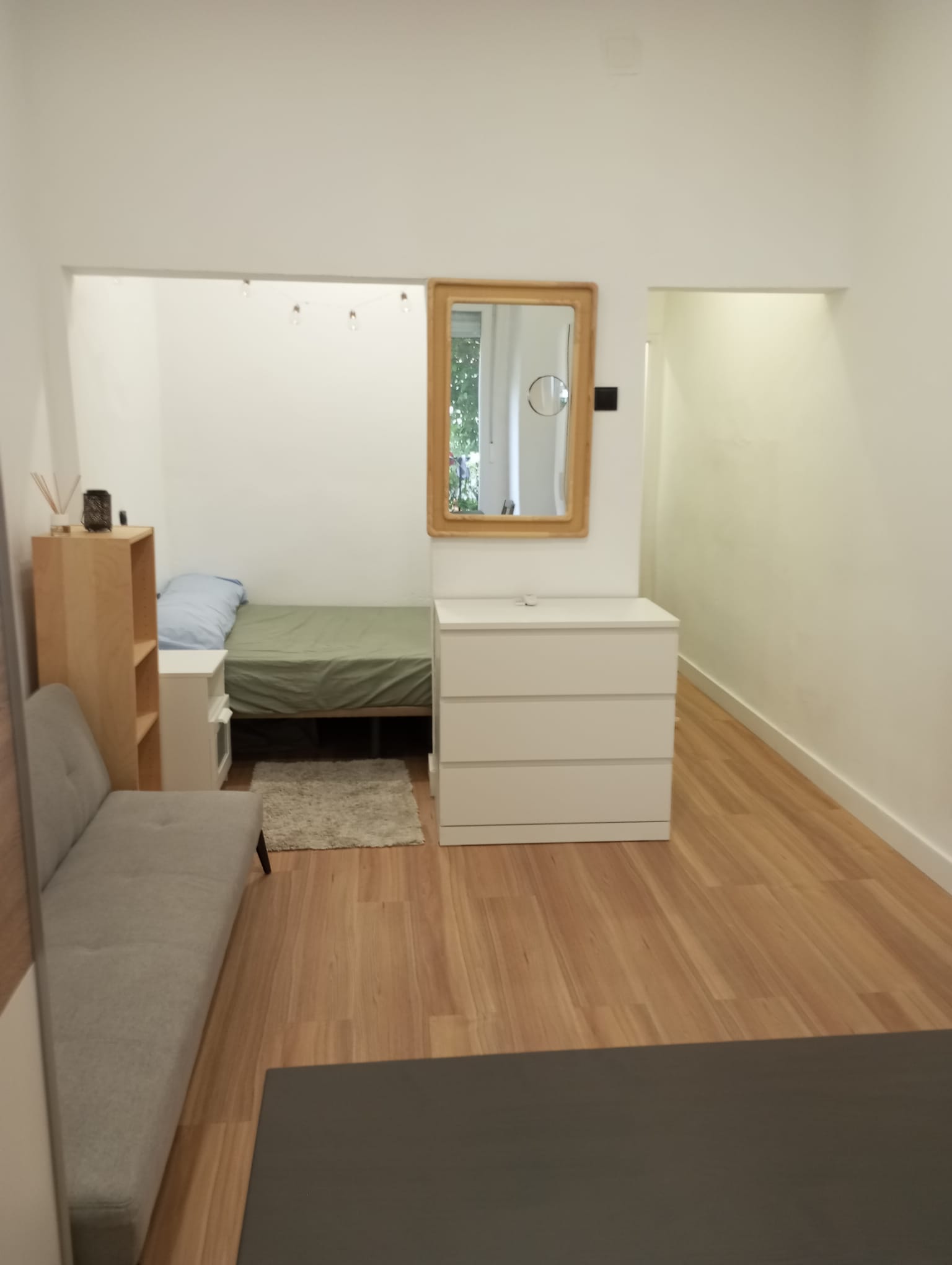 • Salón luminoso con zona de dormitorio integrada, ideal para un estilo de vida funcional y contemporáneo.